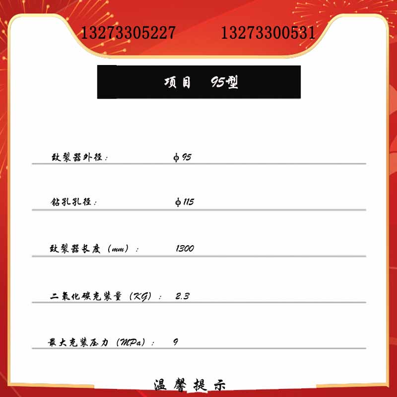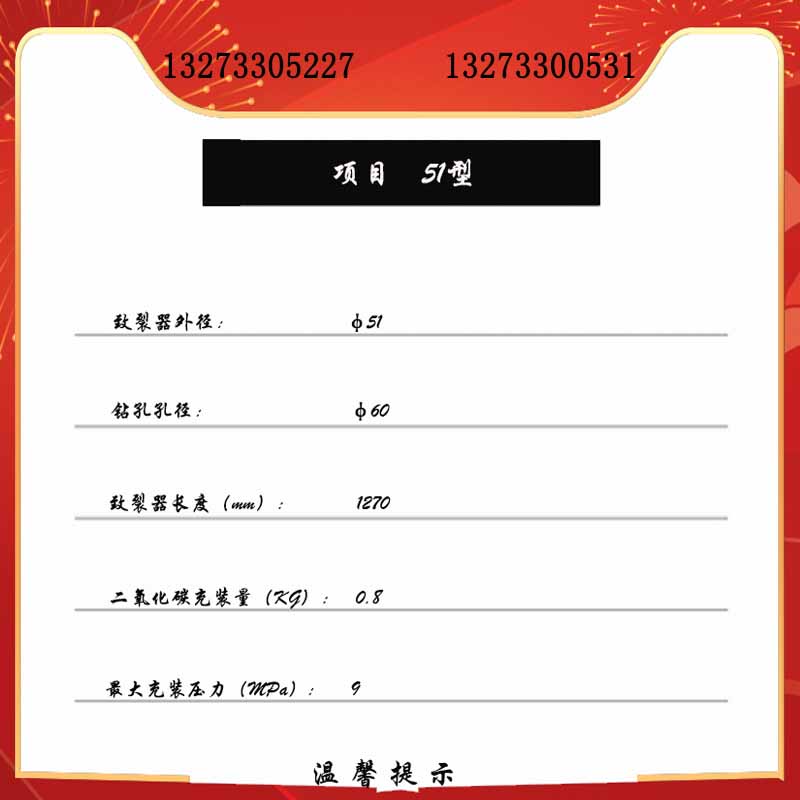 一、二氧化-碳致裂器性能高,在工作中不会产生任何明火或者是火花,不会造成隐患。