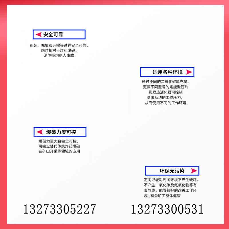 液态二氧化-碳致裂在采石场开采或矿山致裂及工程施工或岩石碎裂等使用,开创了各工程不再使用咋呦也能安全实施致裂作业的先例。
