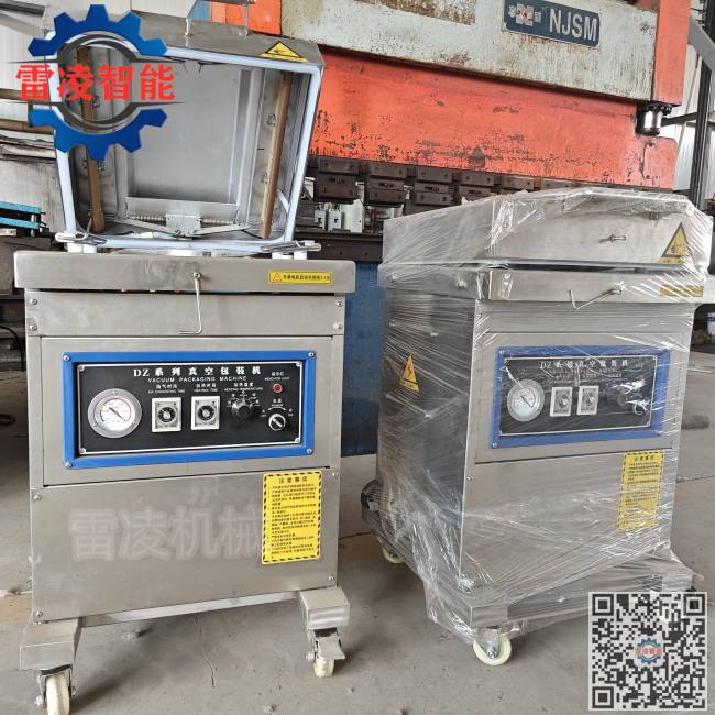 4.真空包装机:我公司生产的DZ-600真空包装机,它具有防水、防潮、故障率低、使用寿命长等优点,架体采用标准食品用304不锈钢板,强度高,不易破损。具有放水、防尘、记忆准确的公司专属电脑版。新式加热装置,进口加热条、隔离布、属公司。整机材质为304全不锈钢,工作室、台板为4mm厚。设备具有移动和固定刹车装置。