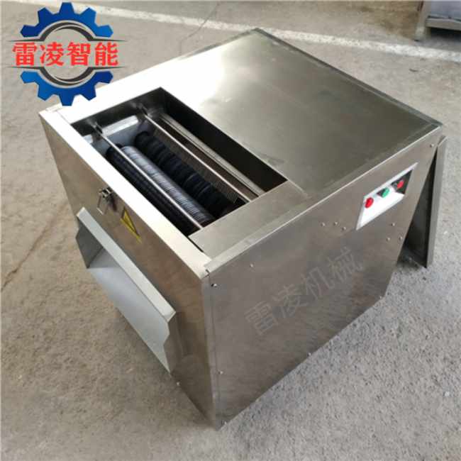 1.牛肉切条机:诸城雷凌智能装备有限公司生产的可以将块状的牛肉切成牛肉条,放料的时候请注意肉的横向和竖向,避免方向不对将肉条切散。
