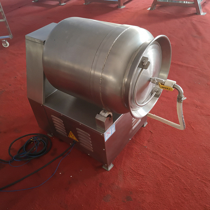 滚揉机可以使肉均匀的吸收腌渍,可以提高肉的结着力及产品的弹性;可以提高产品的口感及断面效果;可以增强保水性,增加出品率;可以改善产品的内部结构,高效。泰富机械生产的滚揉机全机采用优质不锈钢制作,外形简约时尚,结构合理。全机外表喷砂加无指纹处理,滚桶内部镜光表面处理,清洗方便。滚筒两端均采用旋压式封帽结构,大的增加滚筒内的摔打空间,使滚揉产品的效果均匀,噪音小,性能可靠,操作简便,使用效率更高。
