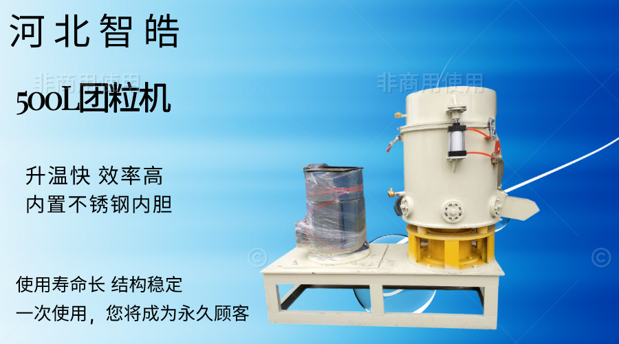 河北智皓批发生产300L/500L/800L团粒机,应用于聚氯乙烯、聚丙乙烯、低密度聚乙烯、高密度聚乙烯、线性低密度聚乙烯等各种软质塑料膜、袋、丝、带、片、管的废料与下脚料的回收;对降解塑料薄膜与角料粉碎、造粒的回收再生产;对化纤材料