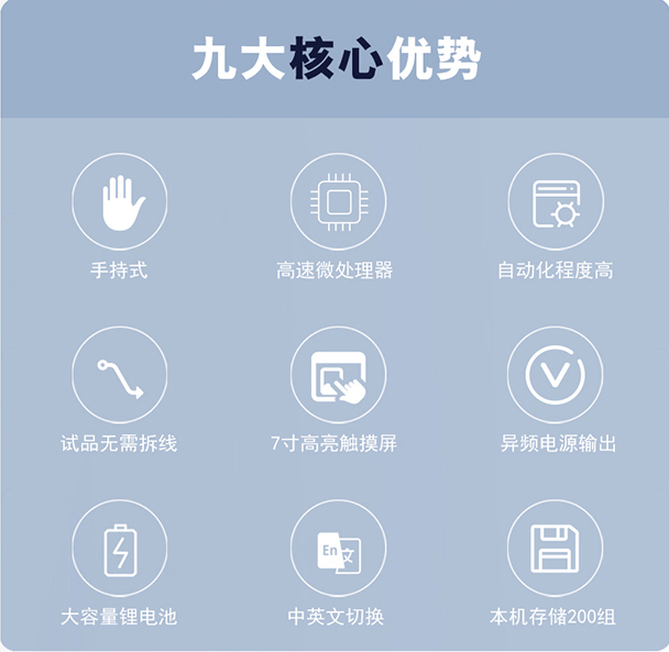 l 仪器使用异频电源输出进行测试,大大提高了现场的抗干扰能力,可在高强度磁场中进行测试而精度不受影响。