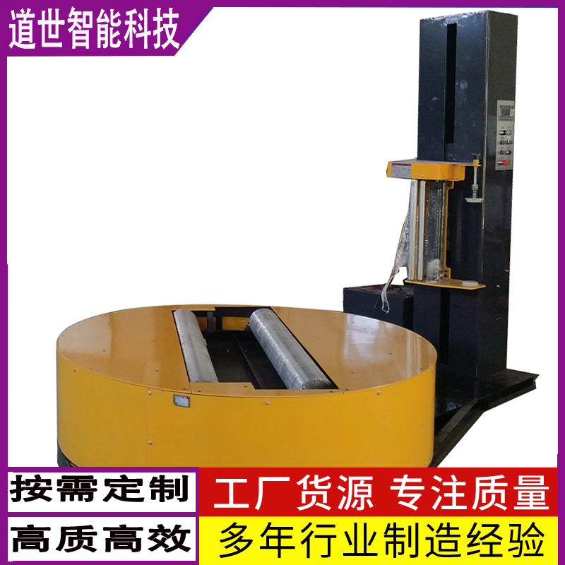 滚筒型缠绕机加高加厚托盘缠绕裹包机本机以LLDPE缠绕膜为主要包装材料,对圆柱形产品进行缠绕包装,如圆筒纸、帘子布、无纺布等。滚筒型缠绕机加高加厚托盘缠绕裹包机基本特征:采用PLC微电脑控制,可设定缠绕圈数。采用HMI触摸屏操作,操作简便。采用变频调速,可根据包装要求调整缠绕速度、重叠度等。手动/自动工作模式选择。转台自动定位。指示灯自动指示正常工作及异常报警。滚筒型缠绕机加高加厚托盘缠绕裹包机设计简洁明了,维护极方便。薄膜框架系统:预拉伸膜框架;当转盘为自动时,如果转速过快,很容易造成顶部填料脱落,启动速度过慢。