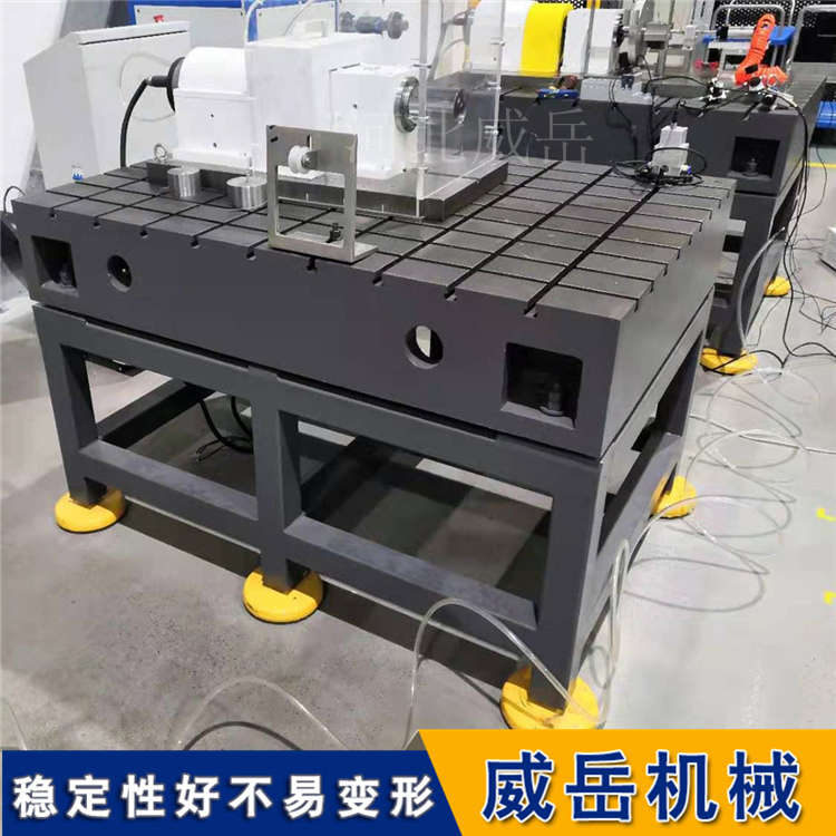 铸铁装配平台铸铁具体适用于机械、发动机的动力实验,设备调试,铸铁装配平台具有较好的平面稳定性和韧性,表面带有T型槽,可以用来固定实验设备;同时适用于产品的工作以上几点就是客户选择威岳的重要原因啦!
