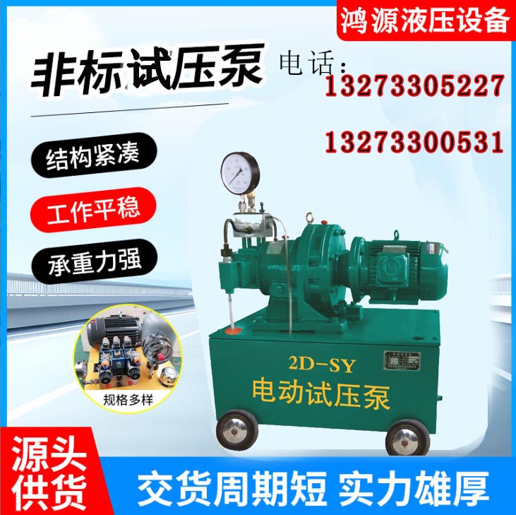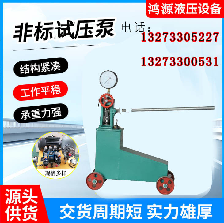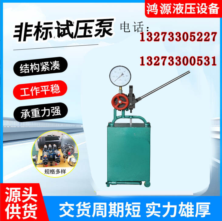 在柱塞的往复作用下,4只水缸内的工作容积形成周期变化。当柱塞为吸入行程时,出水阀关闭,随水缸工作容积的增大,缸内形成真空,水箱内的工作介质在大气压力的作用下,通过滤网、吸水管、顶开进水阀进入缸体内。当柱塞为排出行程时,进水阀关闭,出水阀被迫开启,柱塞将工作介质通过出水阀输入集水器,输送到被试容器内,直至达到某一预定的试验压力,实现试压的目的。