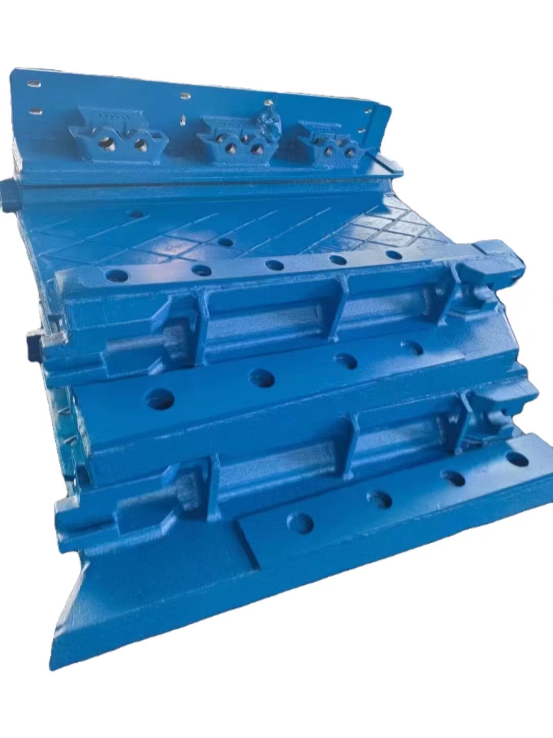 过渡槽这种结构特点,使刮板及链条由中部槽到机头链轮较平稳运行,以适应卸载高度的要求,并成为推溜、拉架的支承体。