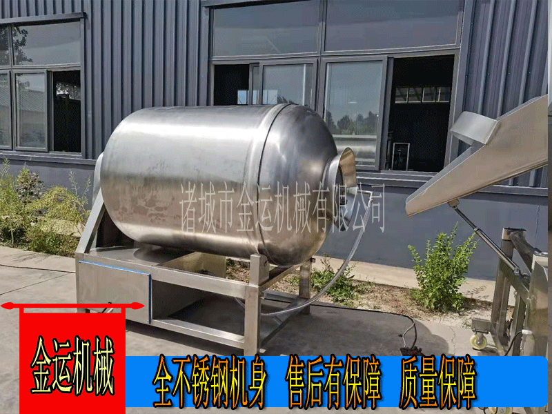真空滚揉机在真空状态能对食物一定程度的保鲜,通过适当的转动,搅拌食品,有规律地拍打食品,所谓“揉压作用”“真空作用”能增加食品的含水量,令食品增加风味,柔软,可口,好卖。我厂生产的真空滚揉机等食品设备全部采用食品卫生设计,材料选进口不锈钢优良板材,确保卫生清洁。