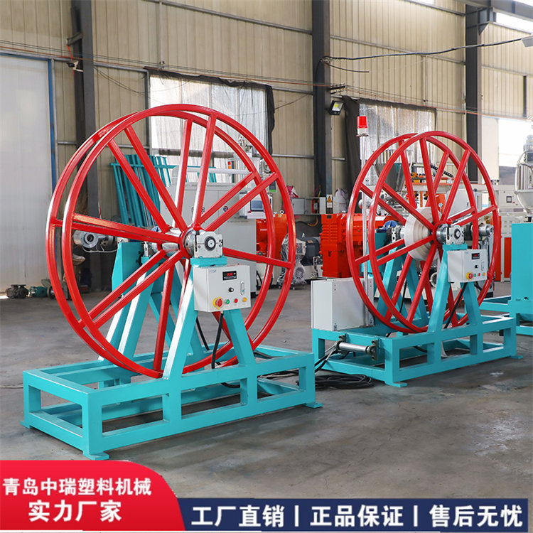 聚酯纤维柔性打包带设备有聚酯纤维排列放卷装置、塑料挤出机、复合模具、冷却水箱、烘箱、牵引机组、收卷机等组成。生产线采用自动化控制,自动化程度高,设备稳定,操作简便,生产效率高,使用寿命长。