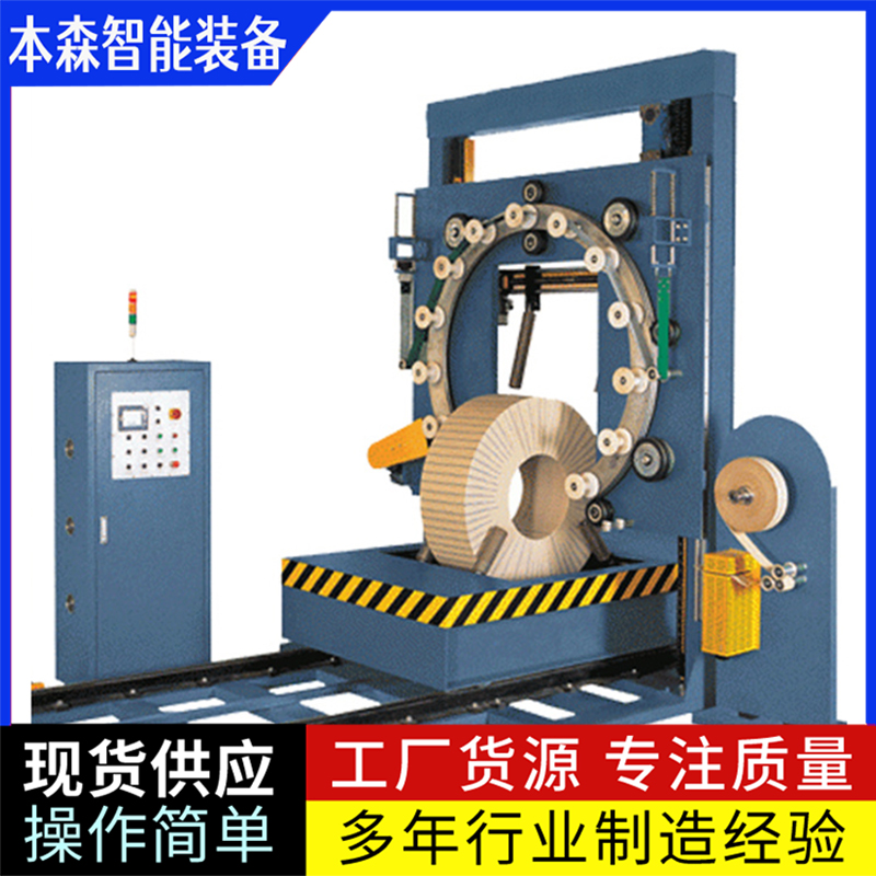 环体缠绕包装机的工作原理主要包括三个步骤:放置货物、缠绕薄膜和切断薄膜。在放置货物时,操作员将货物放置在工作平台上,并根据需要调整平台的高度和转速。接下来,缠绕薄膜开始工作。缠绕薄膜是由薄膜卷和缠绕臂组成的,缠绕臂可以在水平和垂直方向上移动。当缠绕臂开始旋转时,薄膜从卷上拉出并开始缠绕货物,同时缠绕臂也会沿着货物的高度方向上升。当缠绕薄膜缠绕完成后,操作员需要切断薄膜,以完成整个包装过程。环体缠绕机定制生产厂家山东本森智能