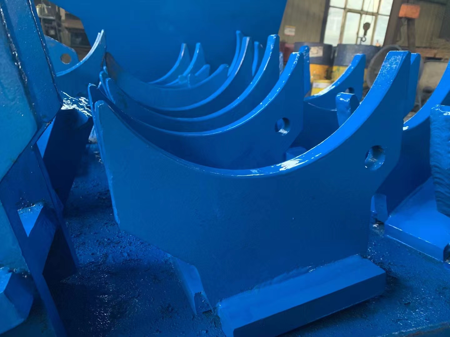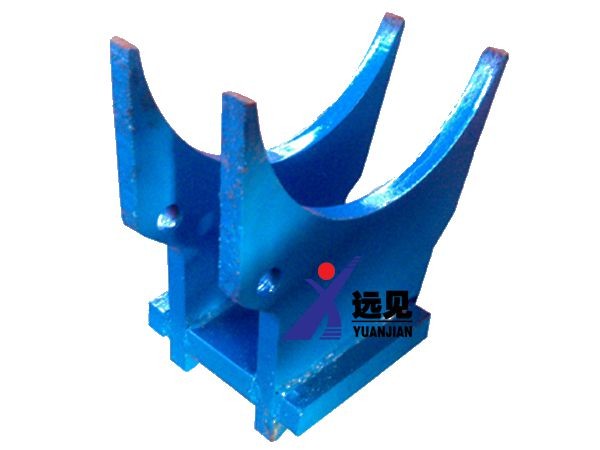 拨链器为焊接结构件,安装拨链器时拨叉插入链轮齿的沟槽内,使刮板链的链条与链轮能顺利的啮合和分离。拨链器的作用是:防止链环卡在链轮沟槽内不能在正常分离点脱开,并及时清除夹在链轮槽内的杂物,保证链轮和刮板链的正常啮合。当上下两受力磨损部位磨损后,可利用堆焊方式修复,再次使用