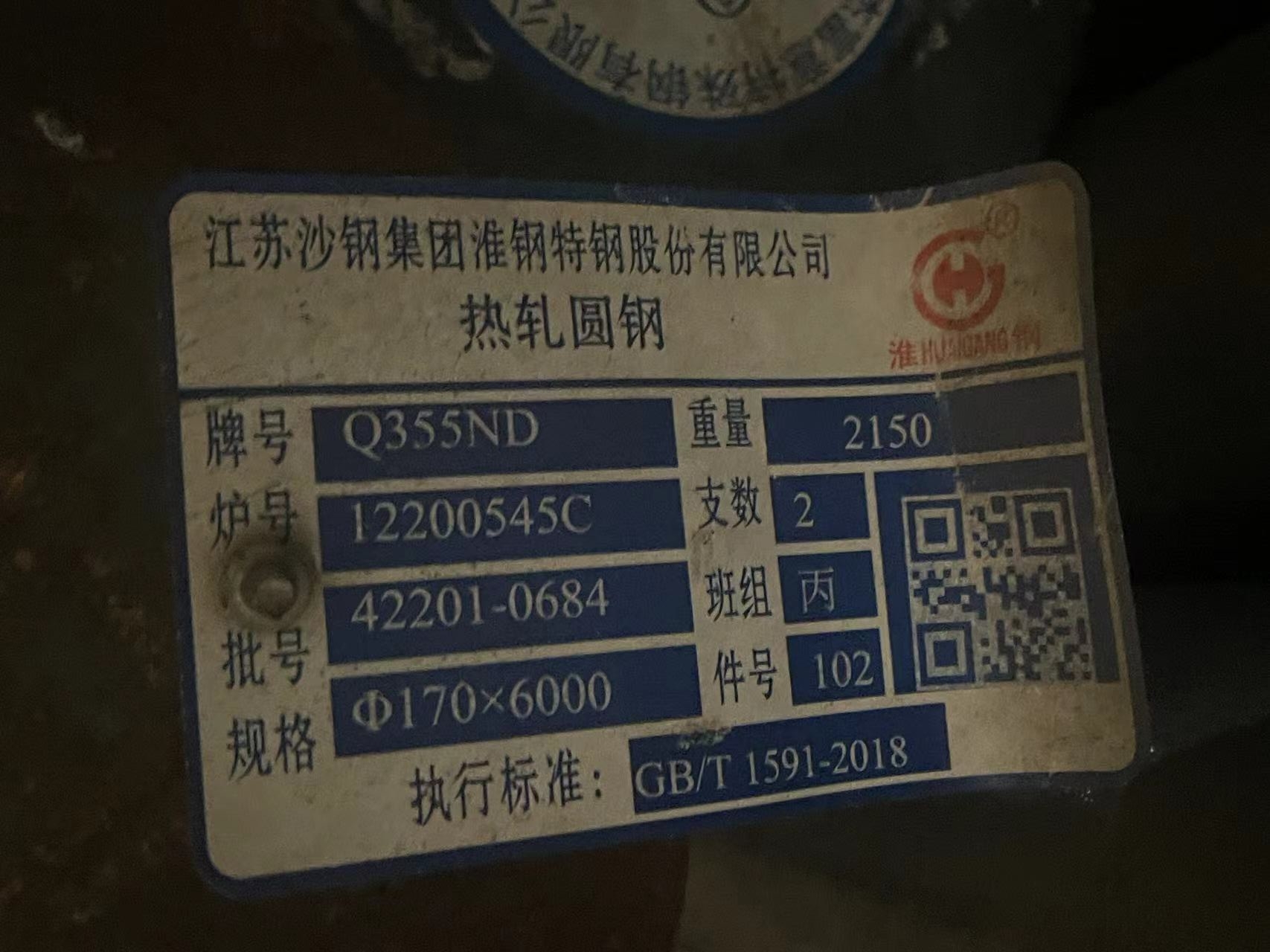 热轧圆钢 Q355ND Φ170*6000 170 6000 0 淮钢