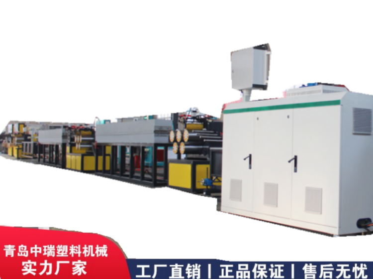 PP、PET打包带挤出机生产线:用PP或PET塑料生产出用于包装打包用的带子的专用设备,可以生产一出二条、一出四条打包带,具有产量高、塑化好;生产出来的带子代替了市面上的钢索带,手动打包机、自动打包机均可使用;该设备生产出来的带子韧性好、带有压花而不易打滑;该设备操作简单,维修方便,安全性能高等优点。