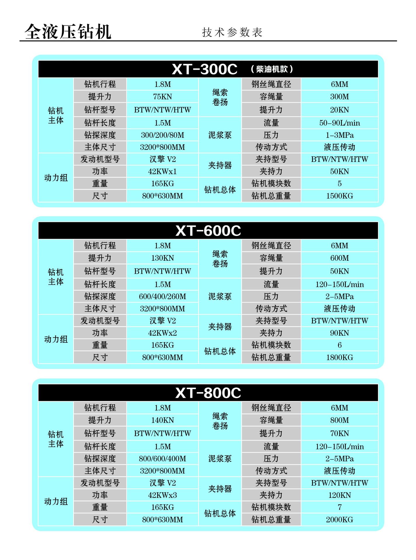 钻探深度 (Drilling depth) | 300/200/80M | 压力 (pressure) | 1-3MPa | ||