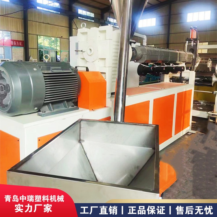 该生产线可连续挤出生产PE、PP、ABS、PS单层及多层片材制品,片材宽度在3000mm及以下,厚度在0.2-2mm。其制品广泛应用于制造文具板、一次性水杯、餐盒果冻杯、饮料杯、食品盒等热成型包装等领域。根据使用物料的不同,选用(排气、不排气)单螺杆挤出机,螺杆的特殊设计和确的温控系统,确保塑化良好及高产量的稳定挤出。