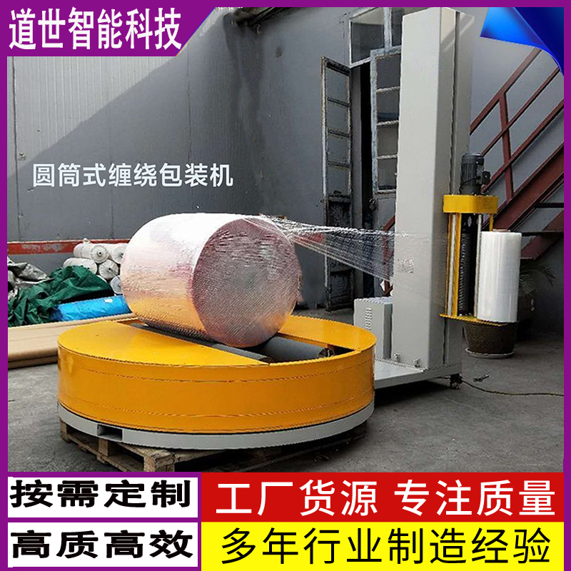 圆筒状物品缠绕包装机圆筒纸缠绕膜机主要用于对圆筒状物体进行缠绕包装。它可以将薄膜或纸张等材料通过旋转的方式,紧密地包裹在圆筒上,以起到保护、固定和美化的作用。圆筒缠绕机的工作原理相对简单。通过驱动系统使圆筒持续旋转,同时材料供应系统将薄膜或纸张等材料送入圆筒旁边,然后调节张力系统控制材料的拉伸强度,从而使其包裹在圆筒上。在包裹完成后,通过切割系统将材料割断,并最终形成一个完整的缠绕圆筒。