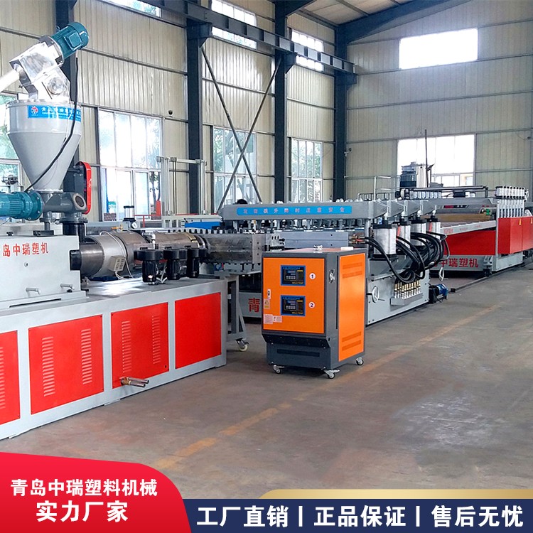 二、我公司结皮发泡板设备介绍1、规格齐全,设备可生产多种规格的PVC广告板。2、外形美观大方,色泽优雅,材质坚固,省电易清洁,使用寿命长3、设备运行平稳,故障率小,磨损小,易于维护保养4、机器耗电量低,噪音小,节能的同时降低了生产成本5、设备操作简单,方便,快捷,易上手,使用安全6、设备技术新,配置精度高,结构紧凑合理,性能稳定,工作效率高7、生产流程:PVC 树脂 助剂→高速混合→低速冷混→锥双螺杆挤出→口模赋形(结皮发泡)→冷却定型→多胶辊牵引→切割制品→收集检验。