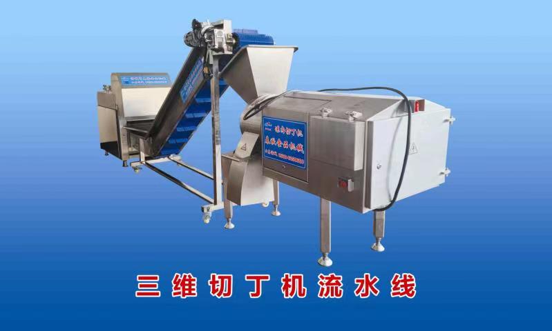 蔬菜清洗完了之后,就要切菜,切菜有高速斩拌机,也有切段类的韭菜切菜机,还有三维大白菜、包菜切丁机。350型号,500型号的都有