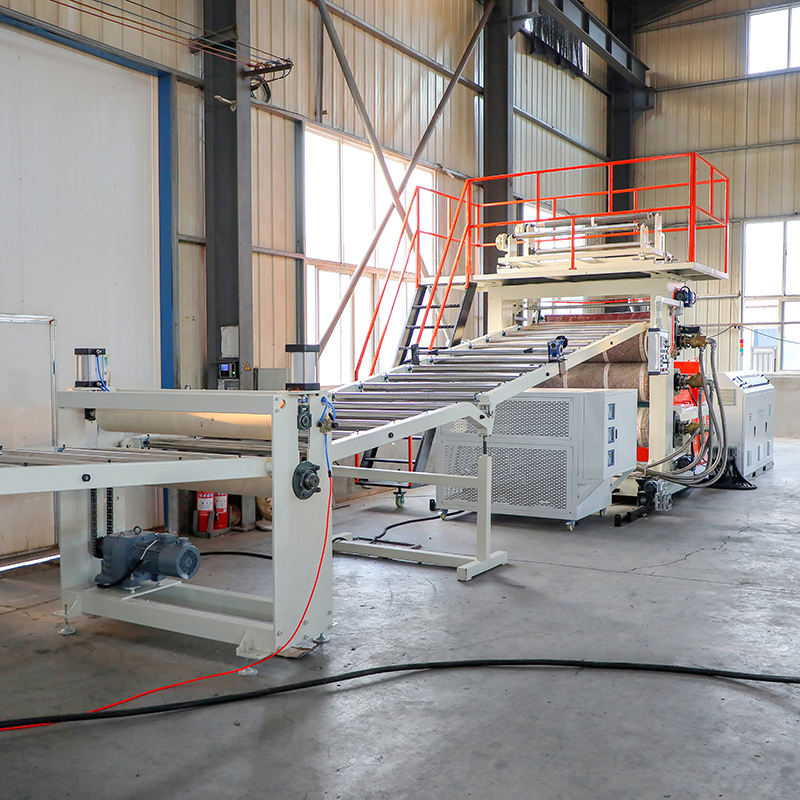 PVC仿大理石板生产设备,由挤出机、定型模、排辊托冷装置、裁边装置、牵引机、自动切割机、排辊输送机等组成。可以生产仿实木板材、实心硬质PVC板材、自由发泡板材、PVC软质卷材等等。设备具有结构紧凑,塑化均匀,挤出量稳定,产量高,寿命长等特点,生产的PVC仿大理石板表面清晰、立体感效果好。