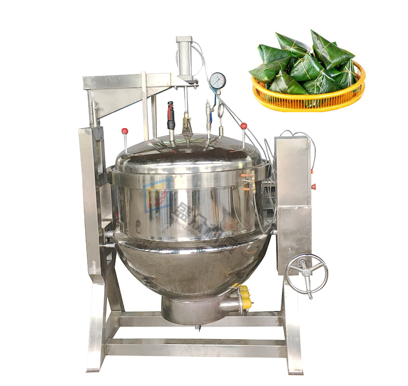 粽子蒸煮锅做好清洁工作的好处在于增加机器设备的耐用程度,保证在制作食品时,干净卫生,提高食品加工的质量,缩短食品加工时间,清洁后使用杀菌效果会大大提升,在使用过程中,锅壁上不会出现杂质,加工前预热的时间短。粽子是用糯米包裹在芦苇叶、竹叶上制成的。生活中煮一锅粽子需要几个小时,但在进行粽子的大规模生产时,这样长的蒸煮时间是不能满足产量的,所以就需要大型粽子蒸煮锅,粽子蒸煮锅的整个制作过程需要90分钟左右,粽子锅是一种高温高压蒸煮设备,其压力高于大气压,容量大,效率高,大大缩短了工作时间,提高了工作效率。
