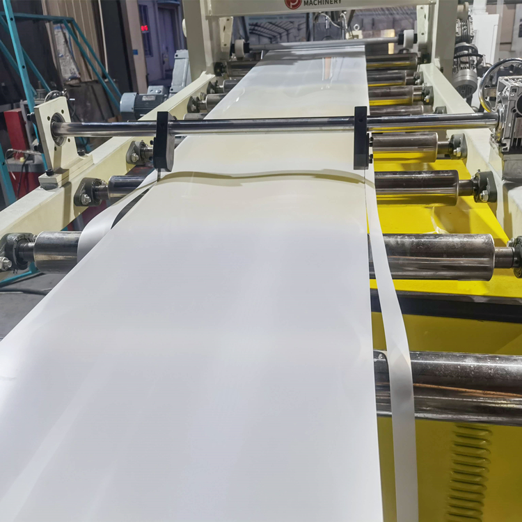 3、在线裁切,自动计米,力矩电机控制气涨轴收卷。
