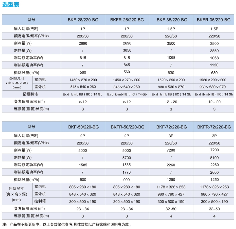 ◆防爆空调可分为单冷和冷暖两种,常规为冷暖,单冷需定制;