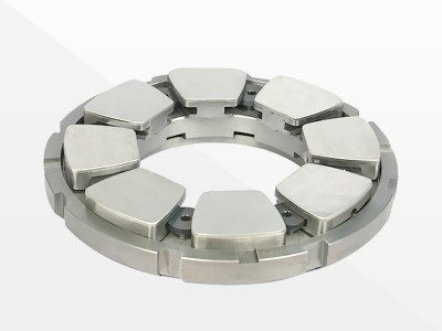 推力瓦,也称为推力轴承,是用来平衡转子的轴向推力。确立转子膨胀的死点,从而保证动静件之间的轴向间隙在设计范围内。推力瓦广泛用于汽轮机、水轮机、水泵等。以及水轮发电机镜板的加工和旧镜板的研磨加工。