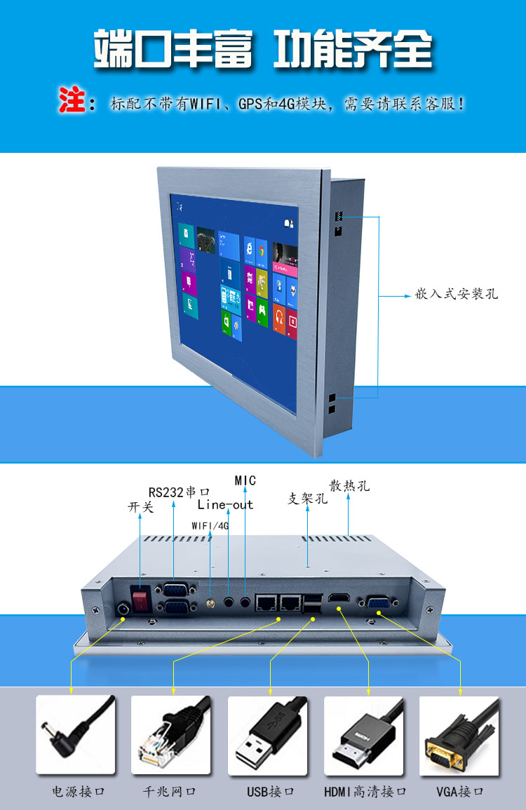 3. 电脑供电:12V,出厂配有12V/5A电源适配器 (可免费加宽压模块,支持9-36V供电)。