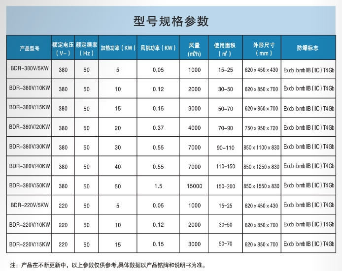 3.所有防爆暖风机出厂时,均附有全套产品技术资料和安装使用说明书,请用户务必严格按说明书的要求进行安装和使用;