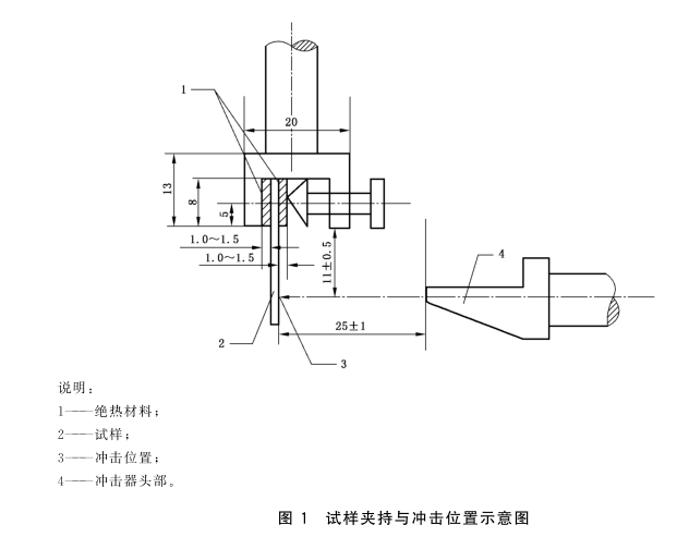 冲击头的中心线与试样夹持器之间的距离为8?0.3mm。