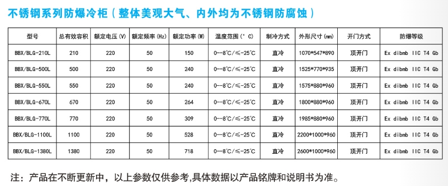 ◆防爆冷藏柜外形美观,设计新颖和具有安装维修方便等特点,冷藏柜采用优质节能压缩机、微电脑控制、噪声低、直观了然、性能优越、操作简便等众多优点。本公司可根据客户的不同要求设计及生产。