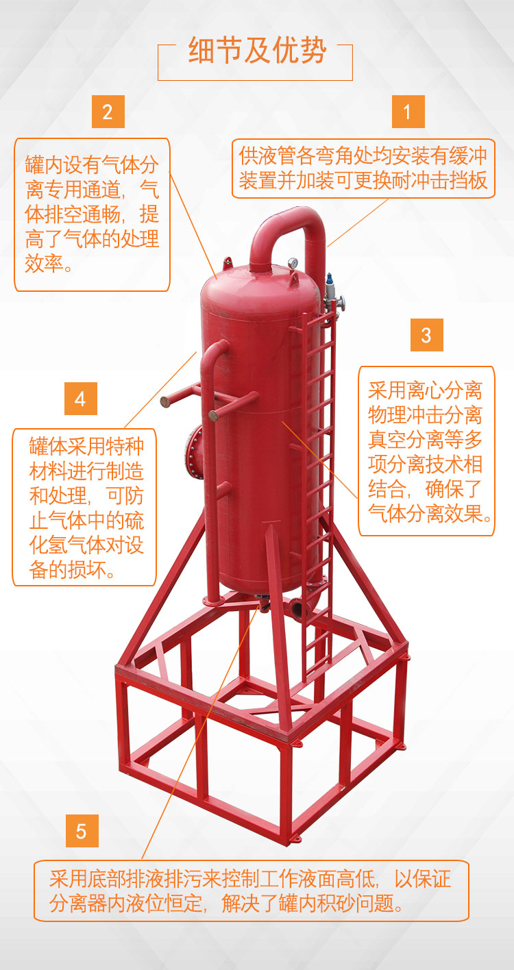 罐体采用特种材料进行制造和处理,可防止气体中的硫化氢气体对设备的损坏。