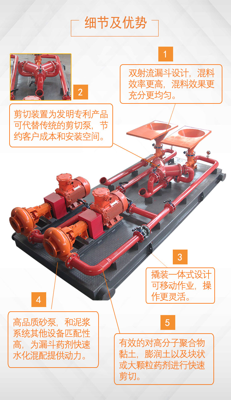 优质文丘里管线,泥浆流速大,药剂输送快,不堵漏,混浆迅速。