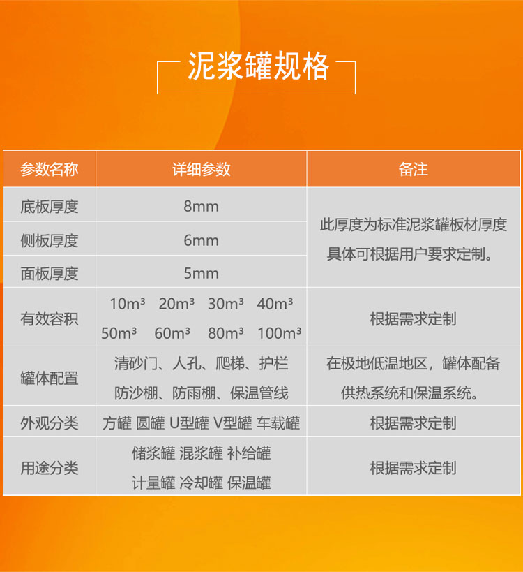泥浆罐为定制化设备,需要提前和工程师 确定罐的尺寸和方量。正道能源泥浆罐根据客户现场工况来定制,以下参数说明仅供参考。