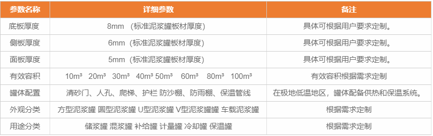 正道能源泥浆罐参数表: