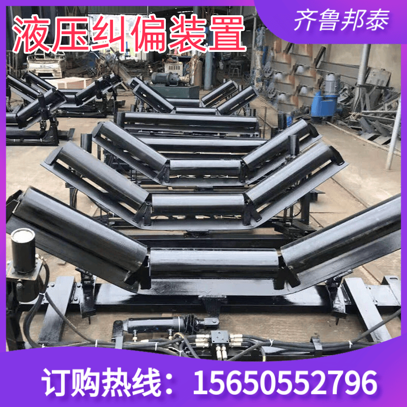 灵敏度高:当输送带发生偏移接触到检驱轮时,油泵立即工作,使调心托辊前后摆动与输送带运动方向形成一个夹角,使输送带朝跑偏的反方向位移,确保输送带始终处于输送机中间位置运转。
