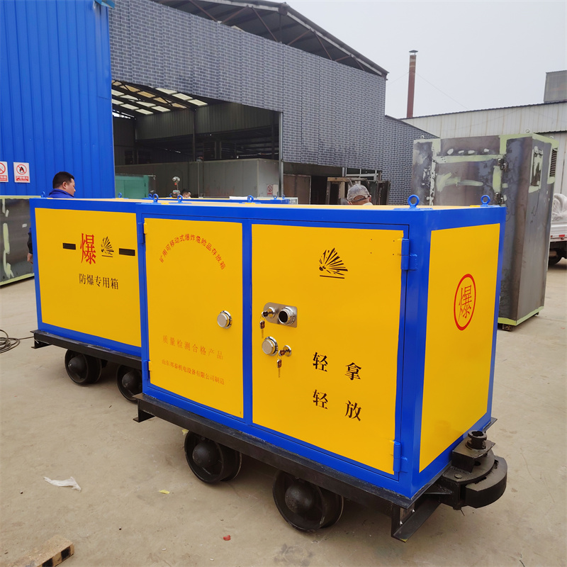 有轨爆炸物品运输车满足大部分有轨矿山井上井下轨道运输爆破器材的要求,集储存,运输为一体的功能,具有防爆、防震、防盗、防火、防静电等特点,为矿山运输爆破器材带来了很大的便利,同时也保障施工安全。