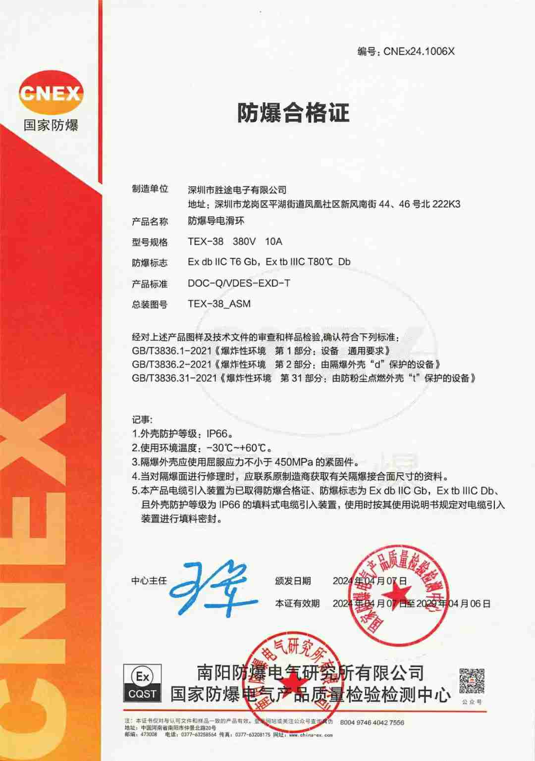 深圳市胜途电子有限公司在防爆导电滑环领域取得了显著的成就。胜途电子2012年,2018,2024年年分别取得防爆合格证,期间为石油,焊机设备,工控设备等提供防爆旋转导电滑环,滑环安全可靠,根据我们的回访,防爆滑环在客户方使用安全,性能稳定。