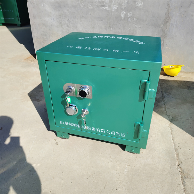 爆炸危险品存放柜,根据存放的爆炸物品的不同(炸药、雷管),也叫做炸药柜、雷管柜、火工品存放柜、爆破保险柜、移动式爆炸危险品存放箱等其称呼。同时还具备有防爆、防静电、防火、防盗、防潮等特点。主要适用于各类矿山、隧道、民爆工程、等需要开山爆破的地方,发挥着重要作用。