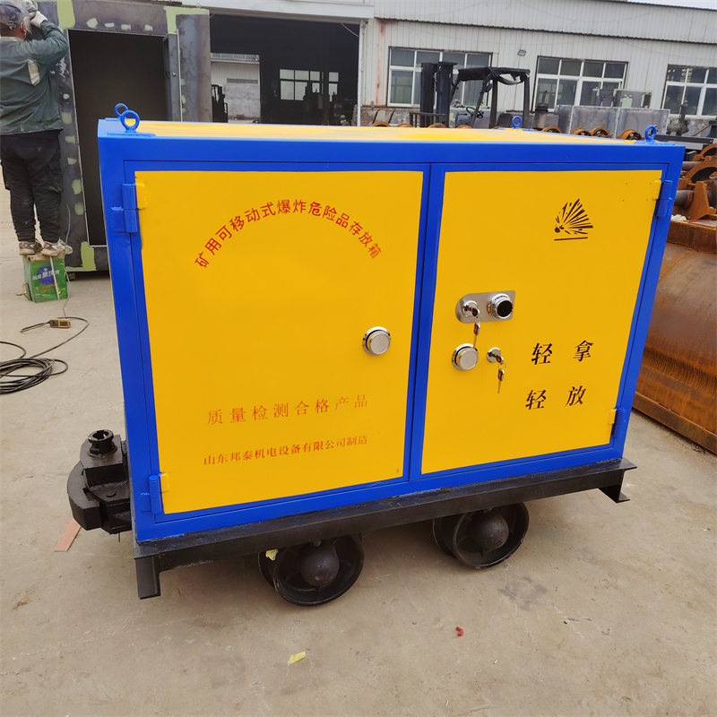 有轨爆炸物品运输车满足大部分有轨矿山井上井下轨道运输爆破器材的要求,集储存,运输为一体的功能,具有防爆、防震、防盗、防火、防静电等特点,为矿山运输爆破器材带来了很大的便利,同时也保障施工安全。