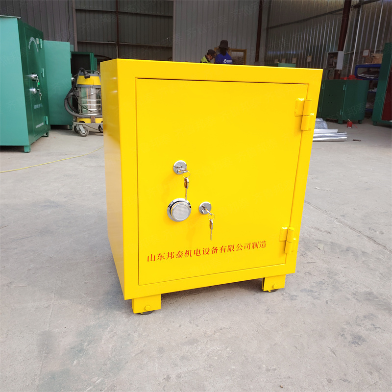 爆炸危险品存放柜,根据存放的爆炸物品的不同(炸药、雷管),也叫做炸药柜、雷管柜、火工品存放柜、爆破保险柜、移动式爆炸危险品存放箱等其称呼。同时还具备有防爆、防静电、防火、防盗、防潮等特点。主要适用于各类矿山、隧道、民爆工程、等需要开山爆破的地方,发挥着重要作用。