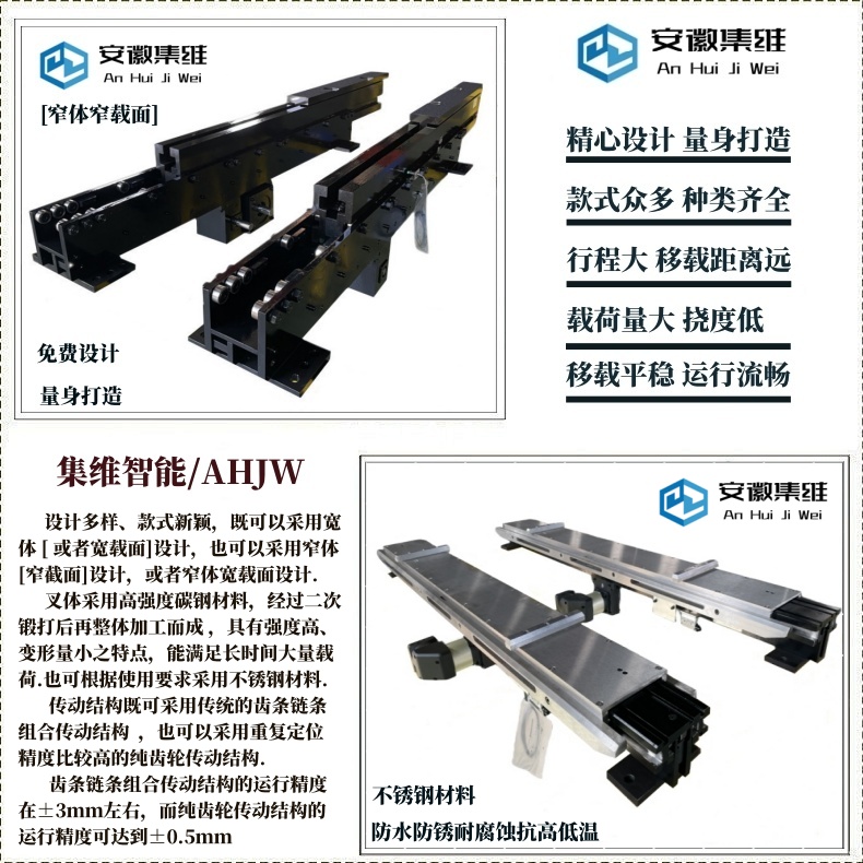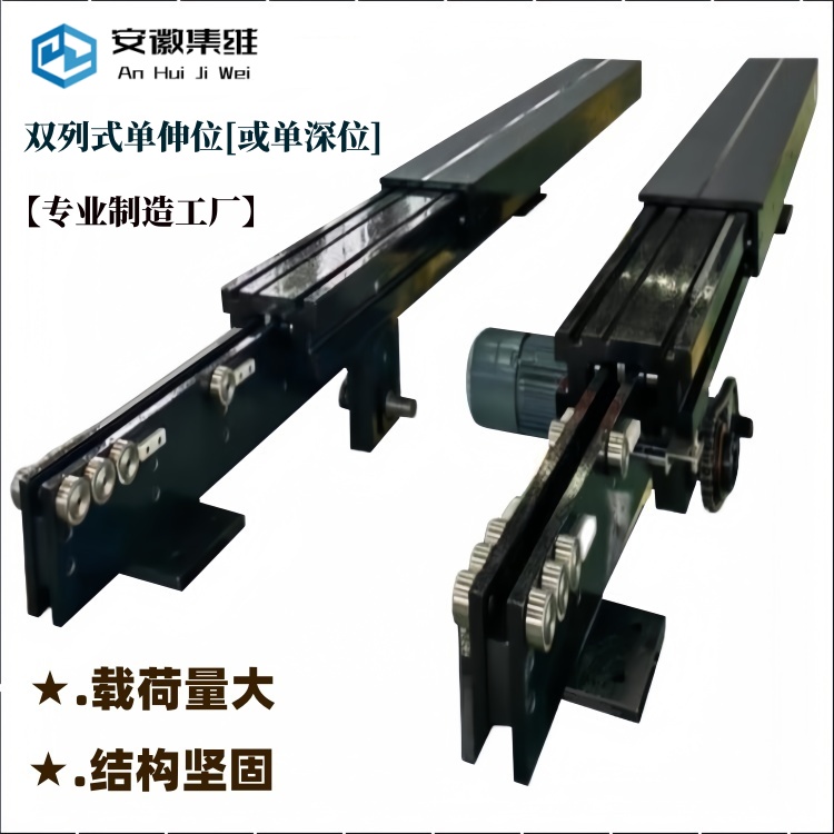 安徽集维智能装备有限公司[马鞍山市]是一家集研发、生产、销售为一体的双向伸缩移载货叉[伸缩货叉]生产制造厂家,拥有完整的质量管理体系、丰富的设计经验、雄厚的加工实力,自主设计、自行生产,具备年生产1600多台套各类移载货叉的制造能力,具有快速完成方案的设计能力,短期交付的生产加工能力,具备提前交付或快速交付的应急能力,是业内较具规模的专业的实体工厂!