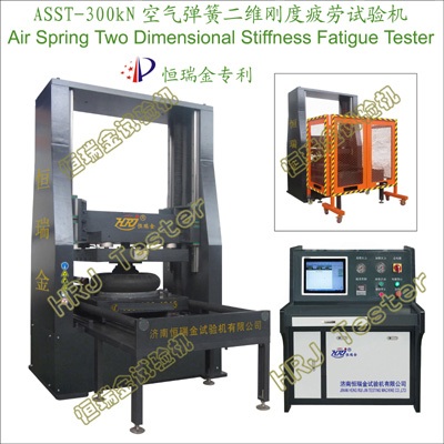 →ASST-300kN空气弹簧二维刚度试验机由垂向载荷系统、水平横向载荷系统、测控系统、气压系统、防护系统等组成