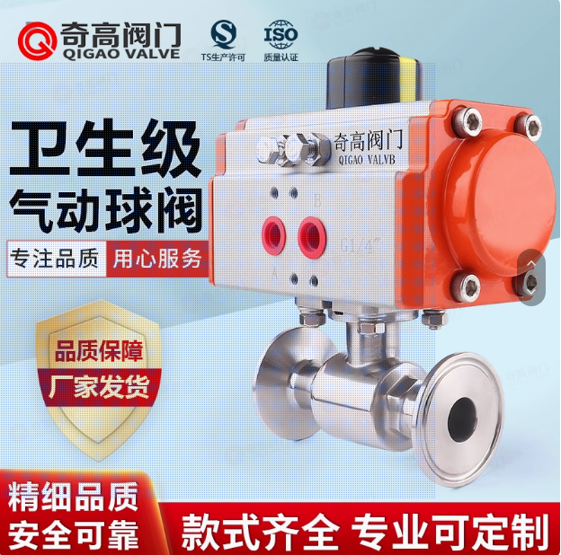 ?气动卫生级球阀?是一种用于洁净流体管道的控制装置,主要用于制药、食品等对卫生等级要求很高的行业。气动卫生级球阀,驱动方式可选用手动、蜗轮、气动、电动,连接方式可选用法兰、对夹、卡箍、卡套,结构形式可选用直通式,密封结构可选用软密封、硬密封,压力范围PN0.1-10Mpa,材质可选用不锈钢。由于阀门的使用范围非常的广泛,同一种阀门在不同的场合与工况有不同的搭配。