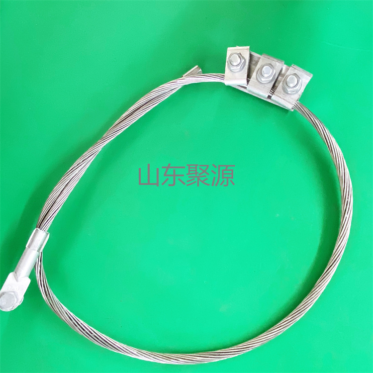 主要作为OPGW管理接地用,OPGW接地线夹由一段铝合金线和一个铝合金线夹(连接OPGW光缆),以及全铝接线端子(连接铁塔主材)构成,总长有1.5m~3m,结构紧凑,导电性能优良,可适用不同的短路电流容量。