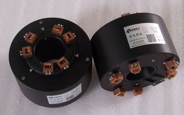 胜途电子大电流滑环使用优质电刷材料和黄铜材料,经过研磨的接触面,确保大面积接触,接触电阻极低,使用可靠。电刷补偿装置确保磨损后电刷接触依然可靠接触。