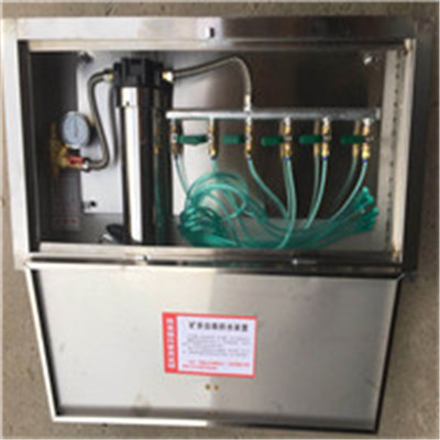 该装置主要用于具有煤与瓦斯突出的煤矿井下救灾防护。箱式压风自救装置安装在煤矿井下铜室或采煤工作面的机风巷进头的适当位置或流动人员较多的地方,以及溜子头、井底车场、运输和回风巷道、各种站房等地。当发生巷道冒顶,煤与瓦斯突出时或有突出预兆时,工作人员跑步进入附近安装有呼吸器的地点和场所避灾,戴上呼吸器,等待救援。