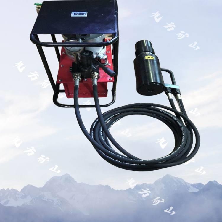MQ22-400/60矿用锚索张拉机具用于煤矿井下锚索安装,由张拉千斤顶和气动液压泵组成。可根据要求调整输出压力驱动千斤顶对锚索施加要求的预紧力。该系统具有结构简单、重量轻、移动方便、密封好、事 ;故率少、使用方便等特点。