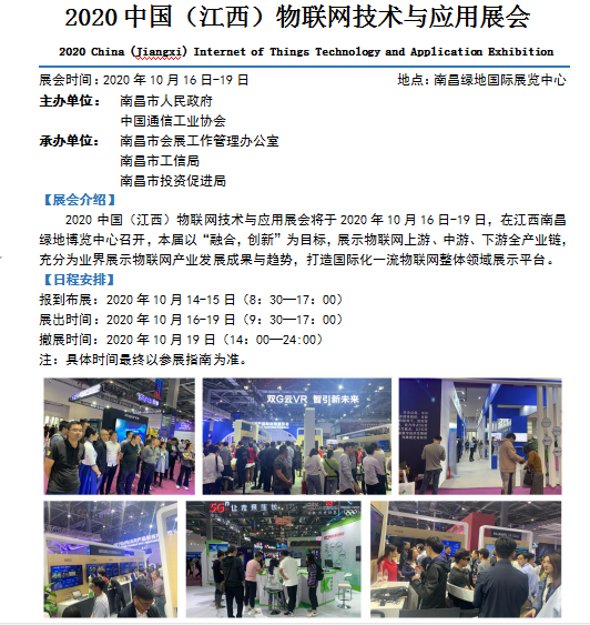 2020中国(江西)物联网技术与应用展会组委会展览展示部:江西九辰广告策划有限公司地址:南昌市红谷滩世贸路999号金久国际大厦A座20F联系人:刘珍联系方式:15279196887QQ:1050841663567 人浏览