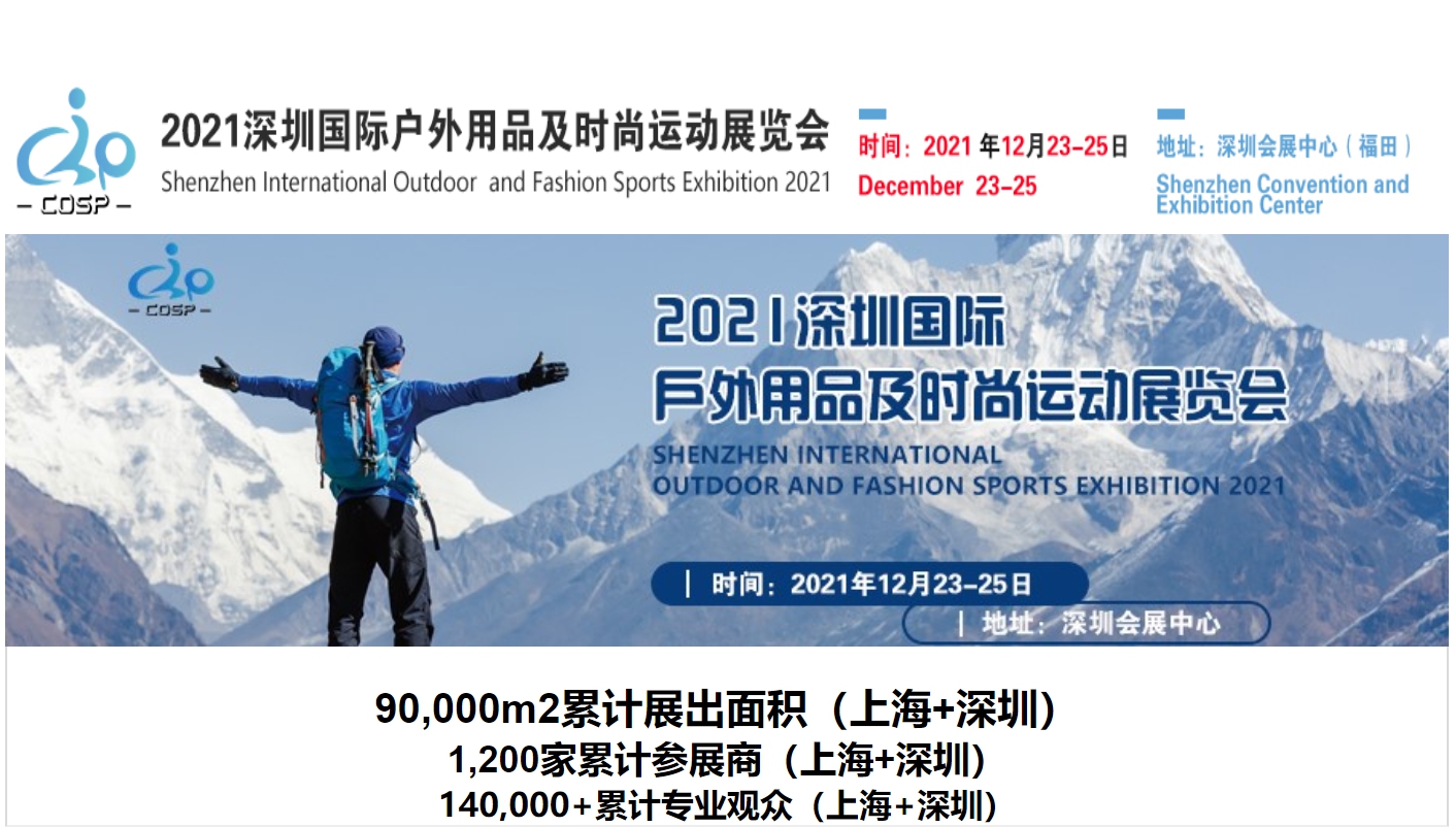 2021深圳国际户外用品及时尚运动展览会2021深圳国际户外用品及时尚运动展览会SHENZHENINTERNATIONALOUTDOORANDFASHIONSPORTSEXHIBITION—同期举办运动服装展———地点:深圳会展中心(福田馆)时间:2021年12月23—12月251023 人浏览